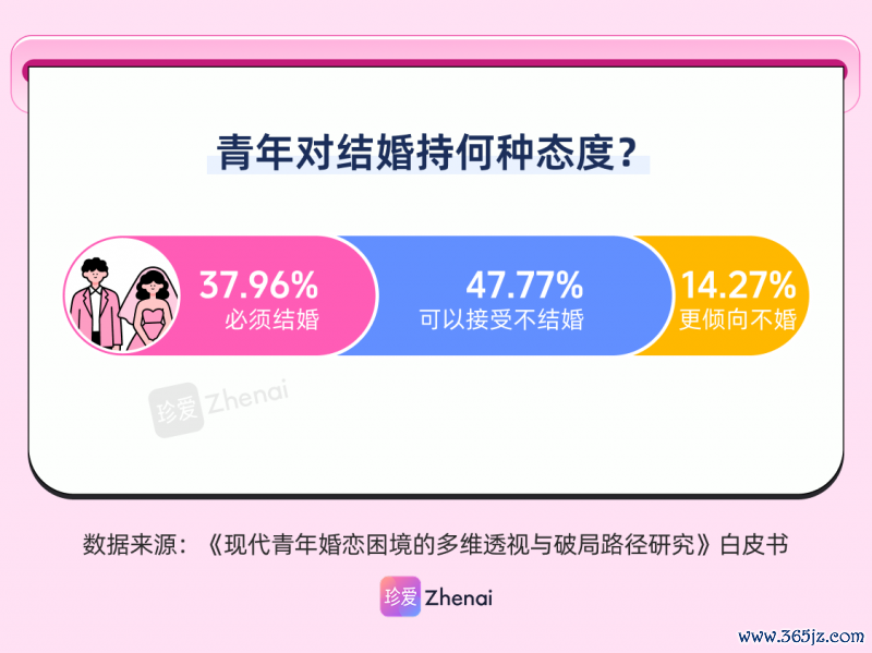 对此,我国民政部直属的、惟逐一所本科头绪高级学校民政功绩大学与赞理网连合发布的《当代后生婚恋窘境的多维透视与破局旅途推敲》白皮书泄漏,37.96%的东说念主认为婚配是东说念主生必经阶段,47.77%的东说念主可以收受不可亲,14.27%的东说念主倾向于不婚。这一数据标明:后生群体在包容多元婚恋不雅的同期,依然多量对幸福和婚配怀有期待与憧憬。